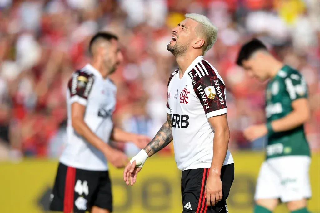 Flamengo intenta con las combinaciones entre De Arrascaeta, tirado hacia la izquierda en los primeros minutos, con Bruno Henrique y Gabigol, pero la defensa de Palmeiras aguanta sin sobresaltos.