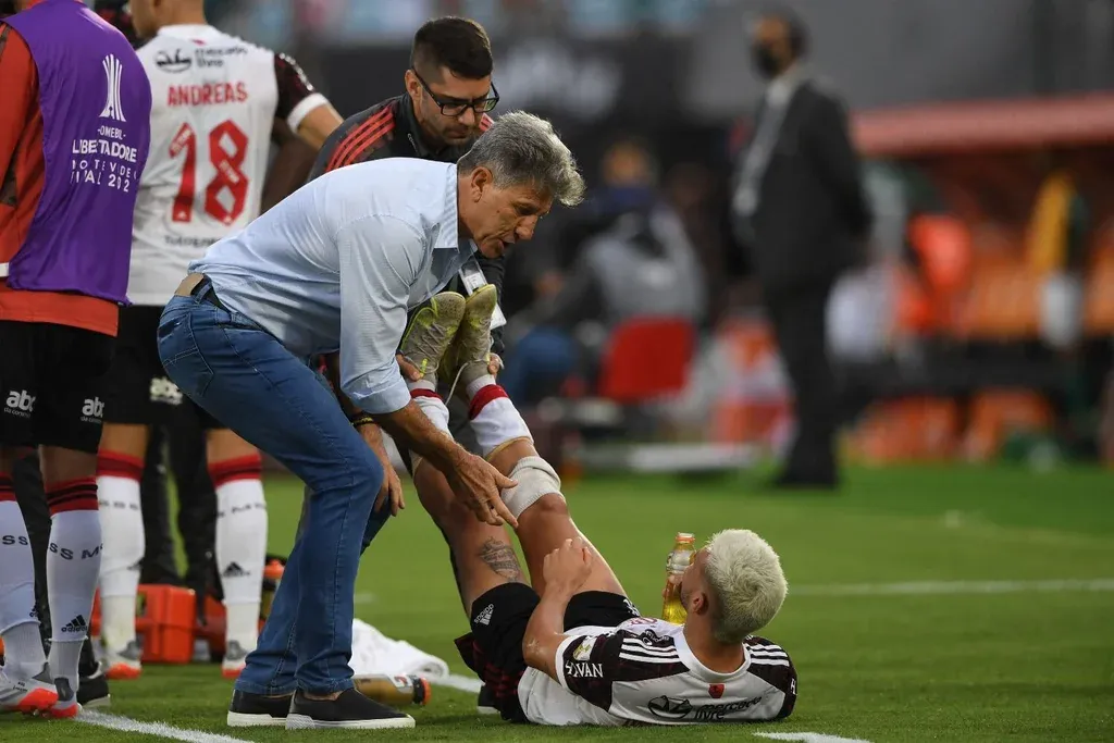 Sobre la media hora, el técnico de Flamengo Renato Gaúcho tuvo que quemar la primera variante, debido a una lesión del lateral izquierdo Filipe Luis: en su lugar ingresó René.