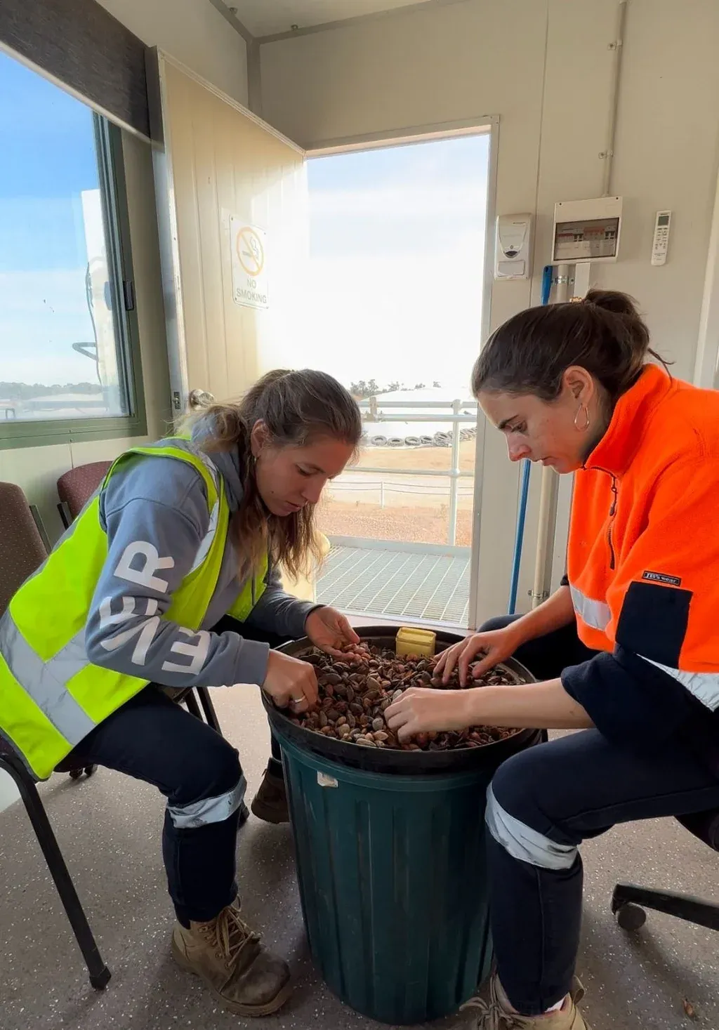 Trabajaron en una planta en la que debían procesar almendras para su exportación. Sobre la producción de almendras comentaron: "Quedamos flasheando". Lo dijeron en coro y a las risas a través del teléfono, en una entrevista que se hizo con 12 horas de diferencia entre Montevideo y Mildura, y destacaron que lo que más atrajo su atención fue conocer que las almendras llegaban a la planta de procesamiento con una doble cáscara, algo que hasta el momento desconocían.