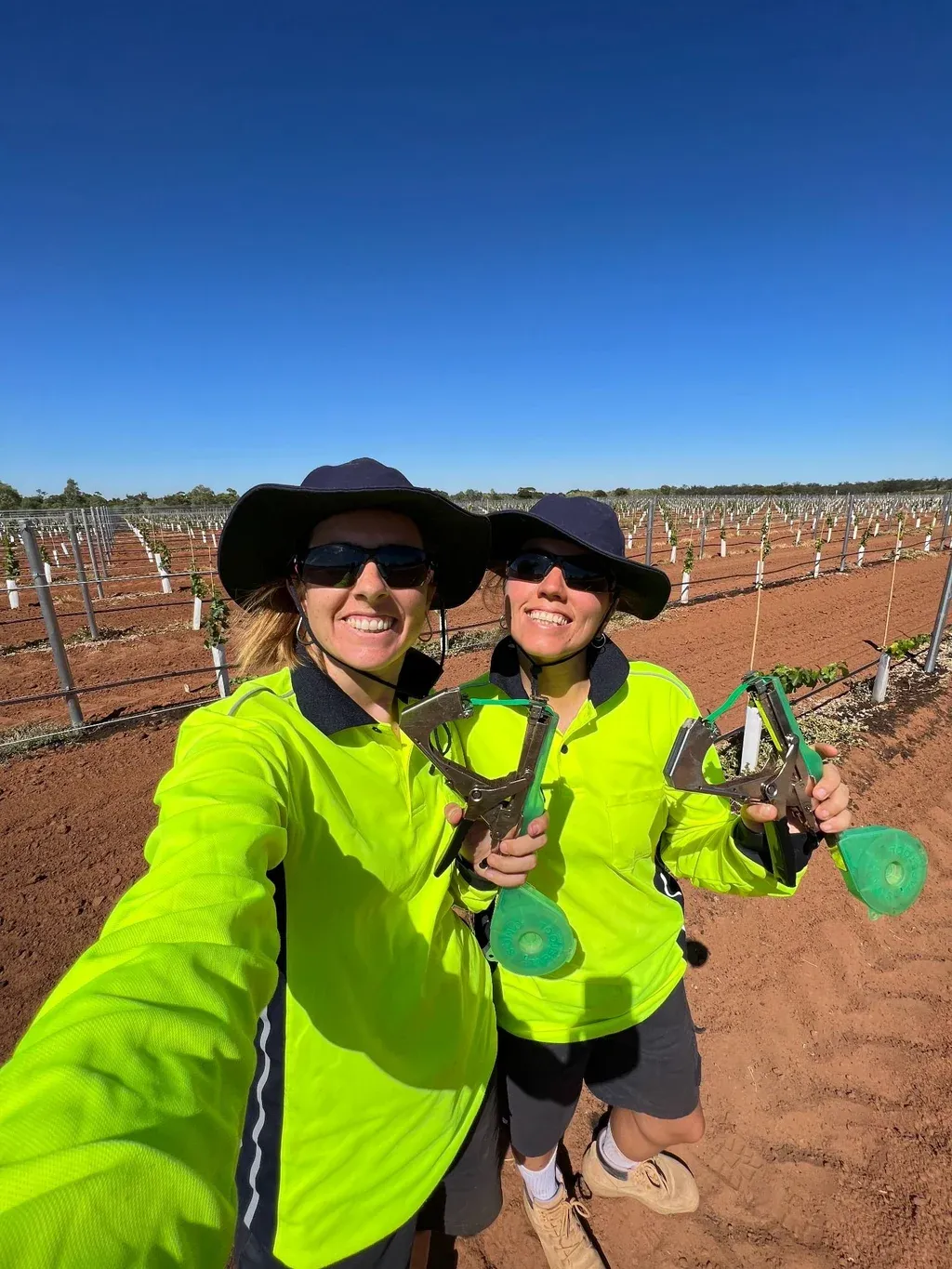 Con máquinas las jóvenes fijaban las plantas de vid a tutores. En la bodega, además, se enfrentaron a grandes desafíos. Fiorella, por ejemplo, que le teme a las alturas, debió enfrentarse a ese miedo, ya que debía hacer tareas sobre los tanques de vino a 15 metros de altura. Y Ania, que no es muy fanática de los insectos, tuvo que vivir con su miedo a las arañas, ya que en la bodega –y en casi todos lados en Australia, según contaron– hay muchas y los australianos no las matan, sino que las ahuyentan.