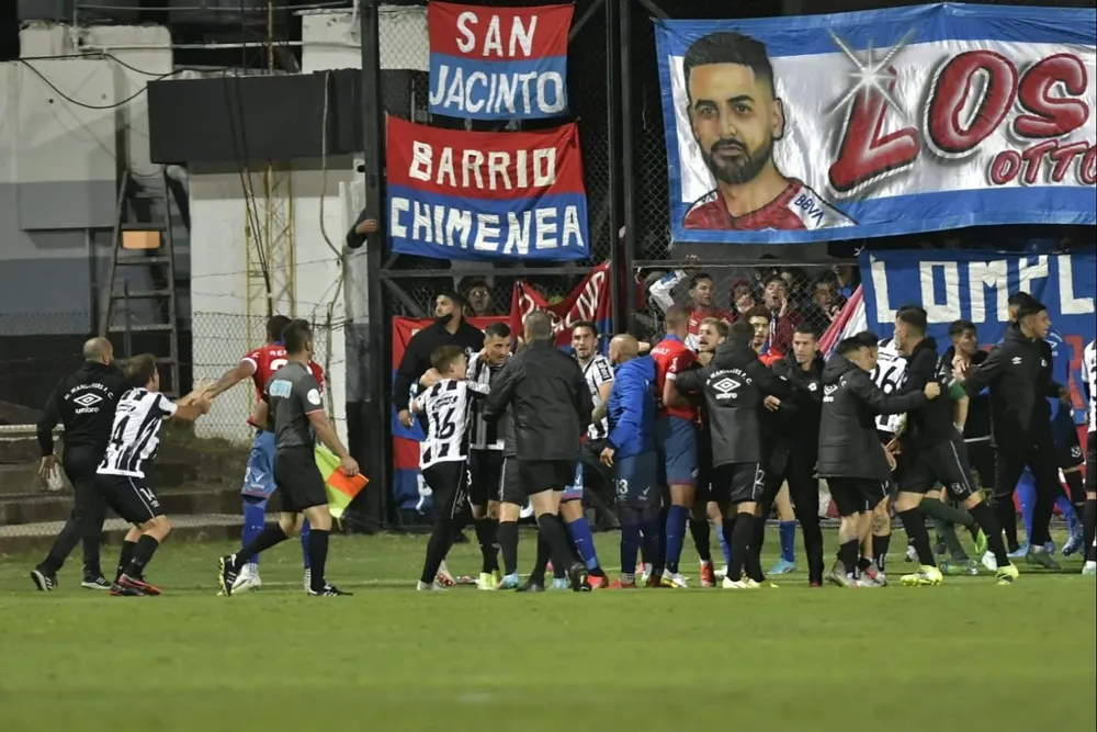 Los incidentes ocurrieron en la cancha, cuando el jugador de Wanderers Diego Hernández festejó frente a la hinchada tricolor, lo que llevó a que fuera expulsado y a que varios jugadores rivales reaccionaran por su gesto.