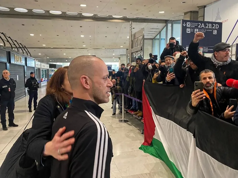 "He cambiado de lugar, pero el combate continúa", declaró el hombre de 37 años a su llegada al aeropuerto parisino de Roissy, donde fue acogido por su mujer Elsa y un grupo de seguidores. "Hoy siento que tengo una enorme responsabilidad para con mi causa y mi pueblo. No vamos a abandonar Palestina. Nuestro derecho es resistir", añadió.