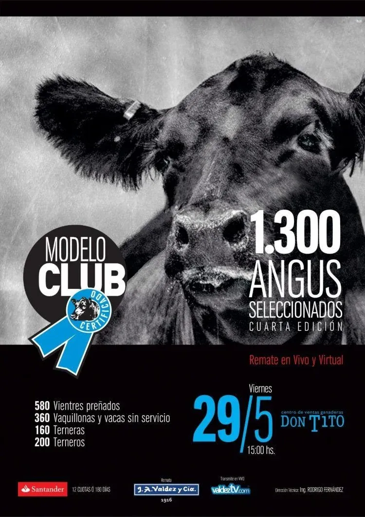 Frigorífico Modelo no es solo una célebre cabaña vendedora de toros, también se dedica a la constante innovación y, por eso, en su momento puso a disposición del mercado la herramienta Modelo Club, para mejorar el servicio a sus clientes. En ese marco, el viernes 29 en el Centro de Ventas Ganaderas Don Tito (en Tacuarembó) se hará otro remate de Angus seleccionados para el Modelo Club, junto a Valdez y Cía.