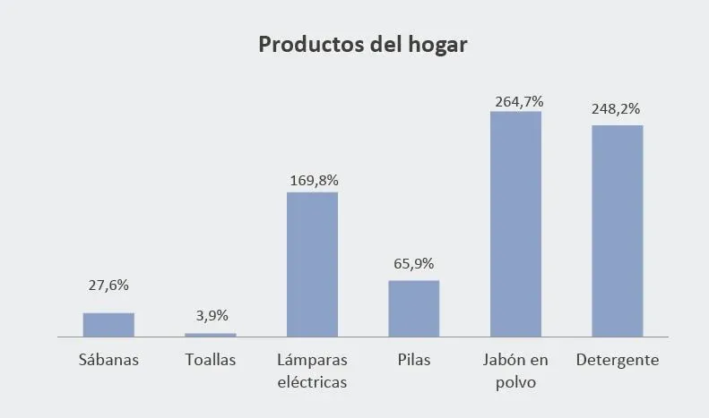 La diferencia de precios en esta división alcanza 128%. El jabón en polvo resulta 264,7% más caro en Salto, mientras que la diferencia para el detergente es de 248,3%.