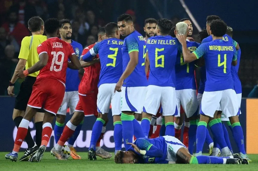 El partido amistoso entre Brasil y Túnez, disputado ante una mayoría de aficionados tunecinos en el estadio Parque de los Príncipes de París, estuvo marcado por varios incidentes.