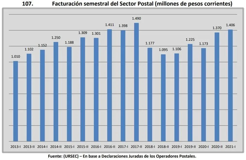 Según el último informe del mercado de servicios postales del Uruguay del semestre enero-junio de 2021 que divulgó la Unidad Reguladora de Servicios de Comunicaciones (Ursec), durante ese período se enviaron 4,862 millones de paquetes, un nuevo récord desde que hay registros. Si se lo compara con igual semestre de 2019 (sin pandemia) se enviaron 1 millón de paquetes más.