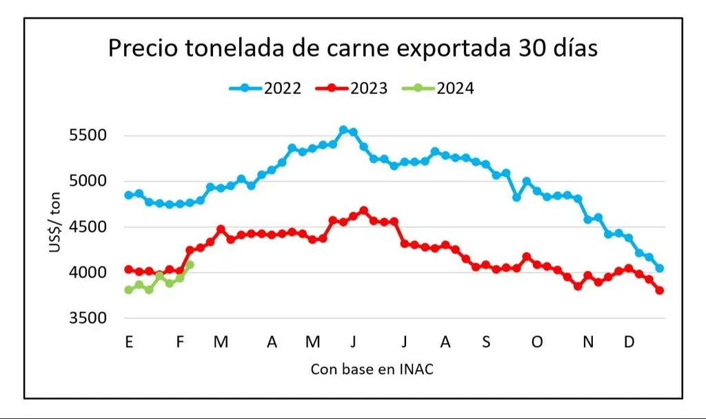 Si bien el dato de precio de exportación dio un salto la semana pasada –US$ 4.685– el promedio en lo que va del año se mantiene en el eje de los US$ 4.000 por tonelada.
