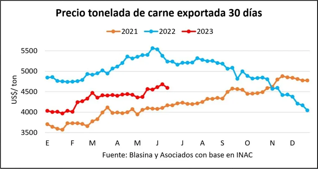 La demanda de China por carne vacuna es limitada y continúa con presión sobre los valores. “China no para de bajar”, apuntó un industrial consultado, una corrección que comienza a verse en el precio de exportación, con una marcada caída semanal en el valor por tonelada. Se ubicó en US$ 4.326, bien por debajo del promedio de los últimos 30 días de US$ 4.598, de acuerdo a los datos provisorios del Instituto Nacional de Carne (INAC).