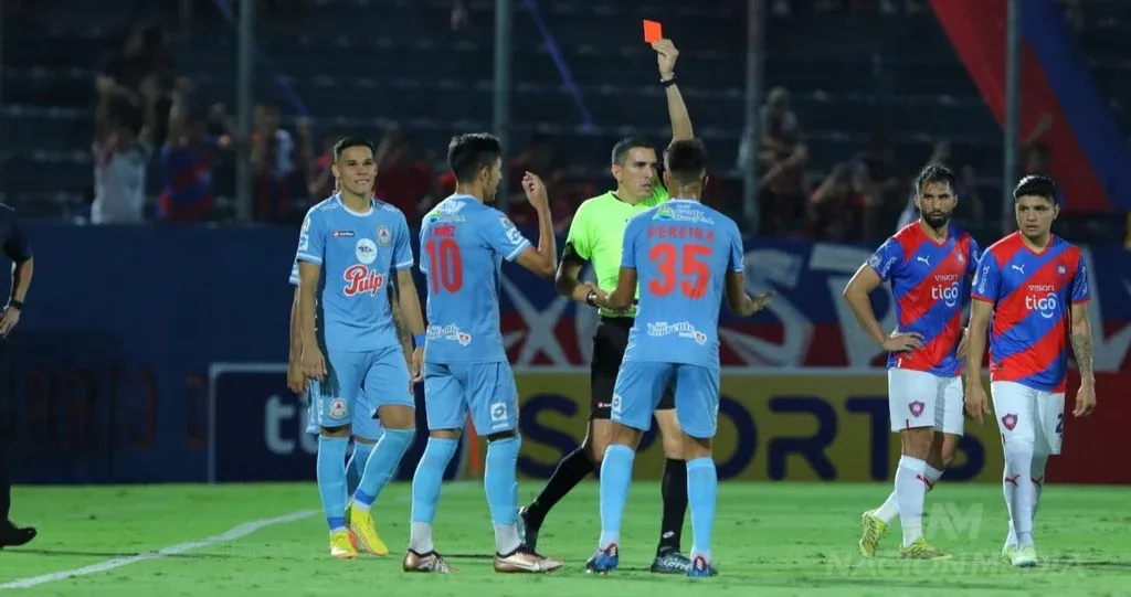El jugador de Resistencia Alan Pereira vio la roja directa tras la revisión en el VAR ya que se vio claramente que le tocó la cola al lateral de Cerro Porteño Alberto Espíndola.