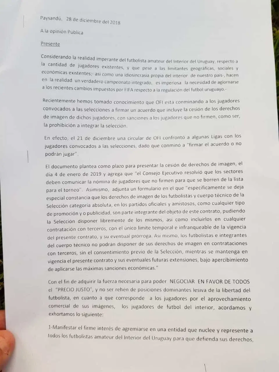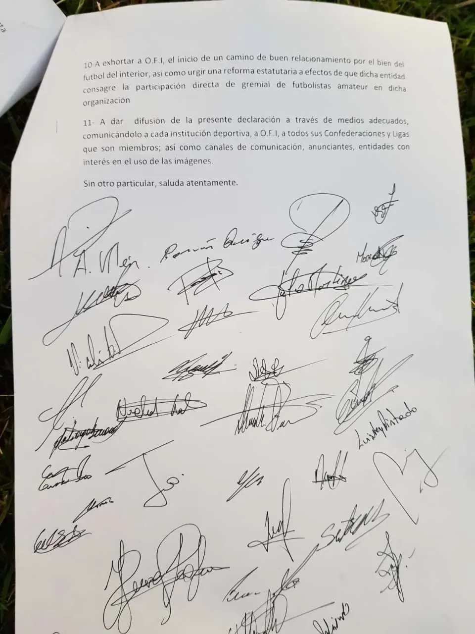 Además, ponen en conocimiento en su documento que “esta situación contraria al nuevo estatuto de la AUF del cual es parte OFI, a Conmebol y FIFA para su intervención conforme la reglamentación vigente”.
