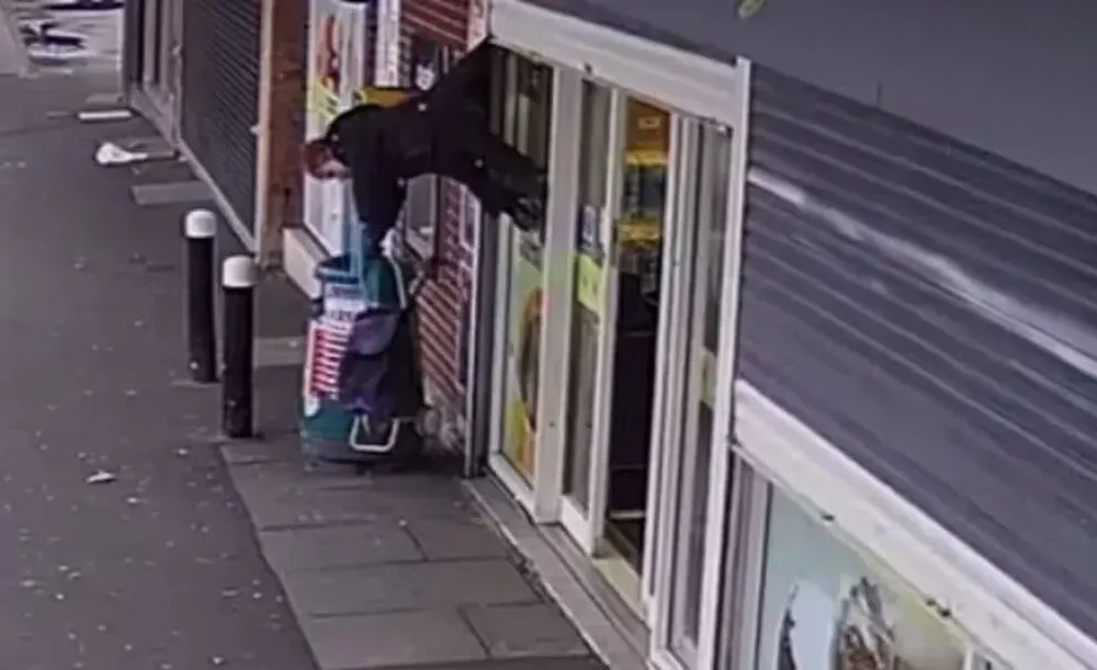Las cámaras de seguridad del comercio pudieron captar el momento e incluso cuando un compañero logró desenganchar el abrigo.