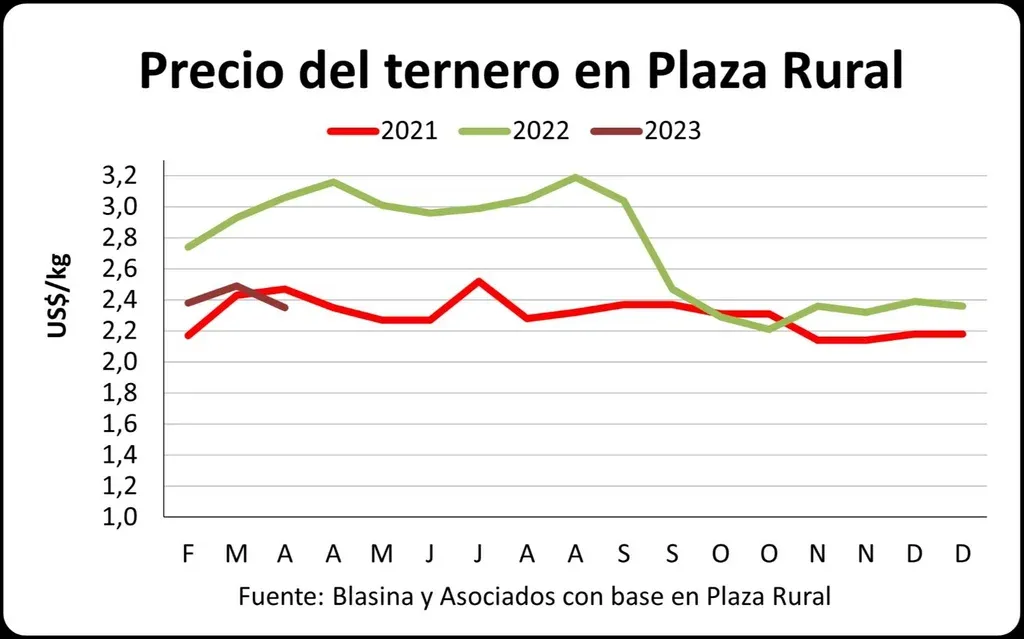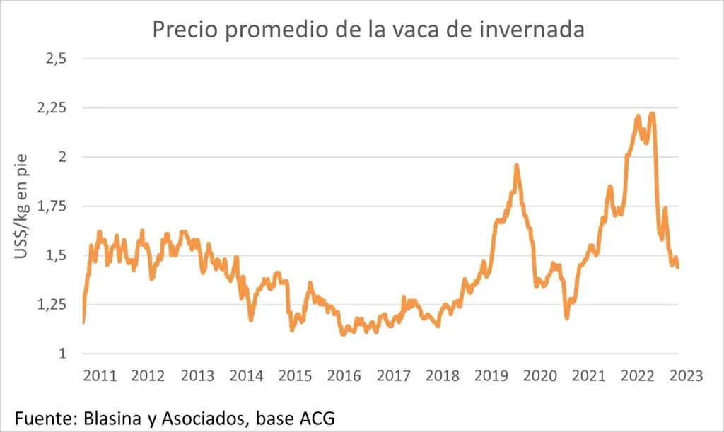 Tras esa baja pronunciada, desde febrero con la apertura de la economía China poscovid la demanda y los precios se han afirmado. Desde febrero los precios han repuntado 20% en dólares, de US$ 3,20 a US$ 4 por kilo de carcasa de novillo bien terminado.