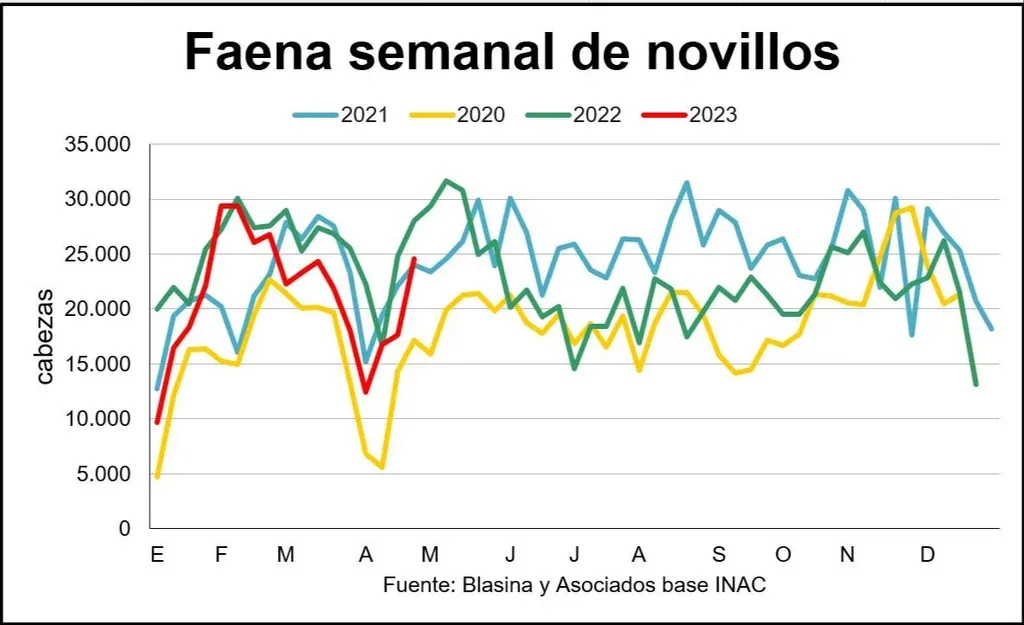 Cierre en los mercados. Si se observa la faena, la falta de oferta queda disimulada por una mayor participación de ganado de engorde, pero se espera que luego de esta ventana de cuota la mínima disponibilidad de animales de pasto vuelva a ser notoria.