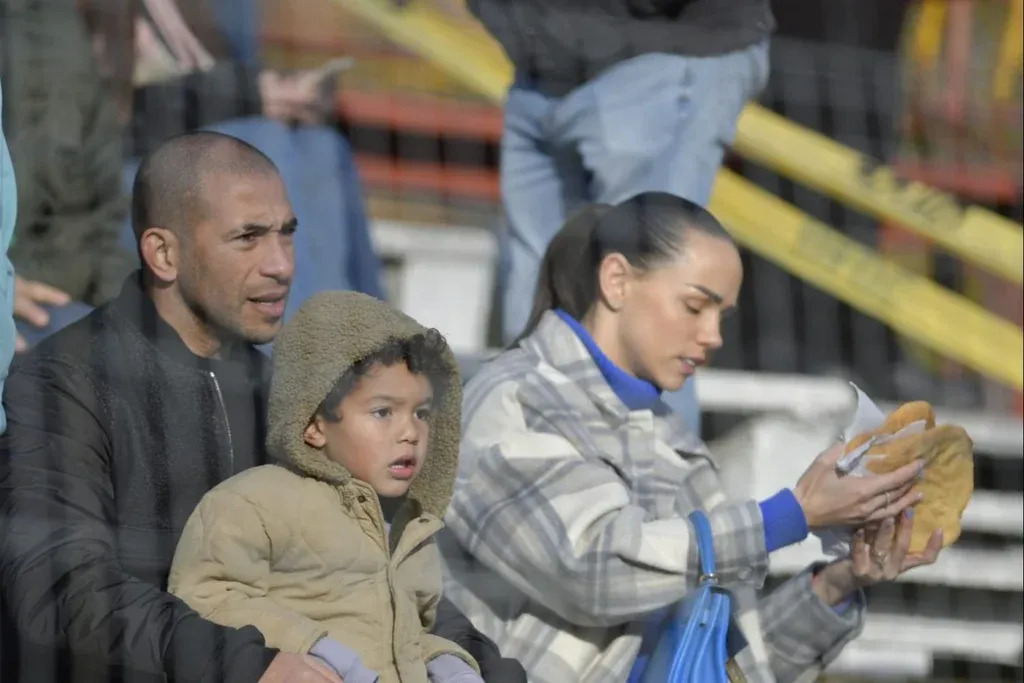 Una vez terminado el juego, el volante retornó de los vestuarios al campo de juego del Campeón del Siglo y se puso a jugar con sus tres hijos.