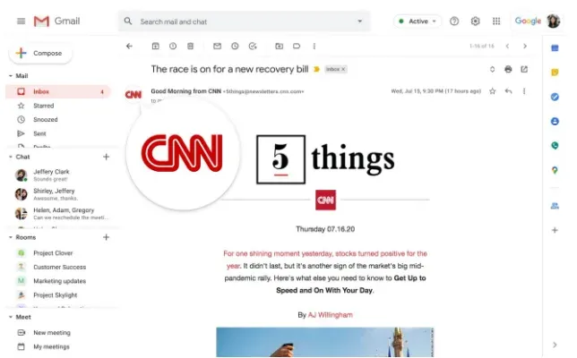 Cuando los correos electrónicos autenticados pasen las comprobaciones contra el abuso, Gmail mostrará el logo de marca en las ranuras de avatar, ubicadas en la parte superior izquierda, de la interfaz del usuario.