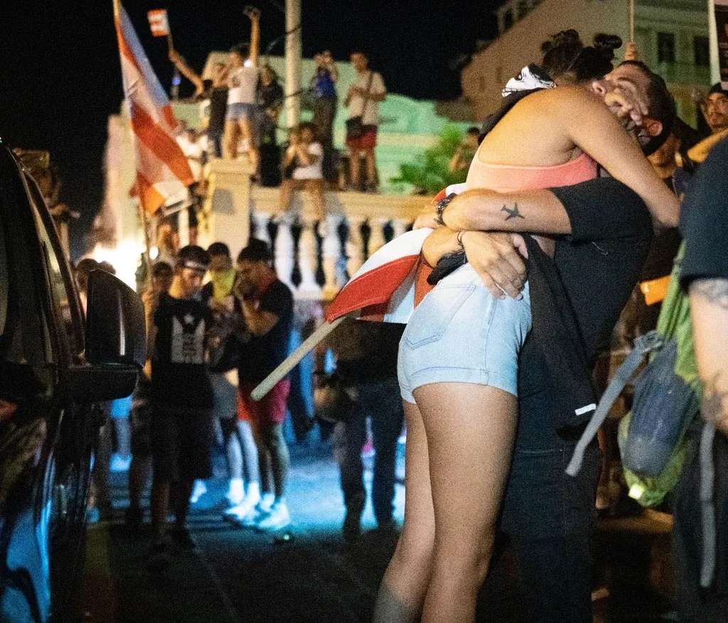 Apenas terminó de difundirse el video se escuchó el alboroto y los "olé olé olé" de cientos de puertorriqueños que desde la tarde protestaban a las puertas de La Fortaleza, la casa de gobierno en la capital, San Juan.