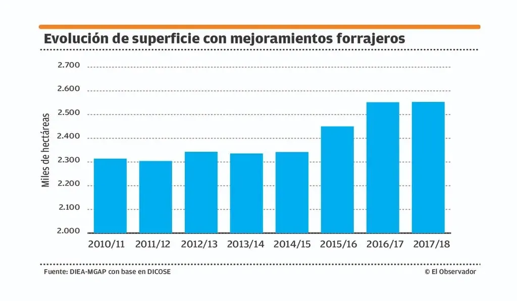 Esos 2,6 millones de has incluyen praderas artificiales, campo mejorado, campo fertilizado y cultivos forrajeros anuales.