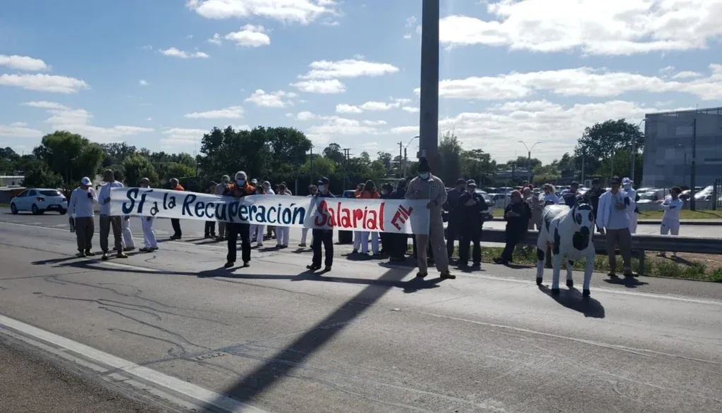 Asociación de Obreros y Empleados de Conaprole (AOEC) Los trabajadores se movilizaron en las puertas de plantas industriales de todo el país. Piden 48 horas de paz