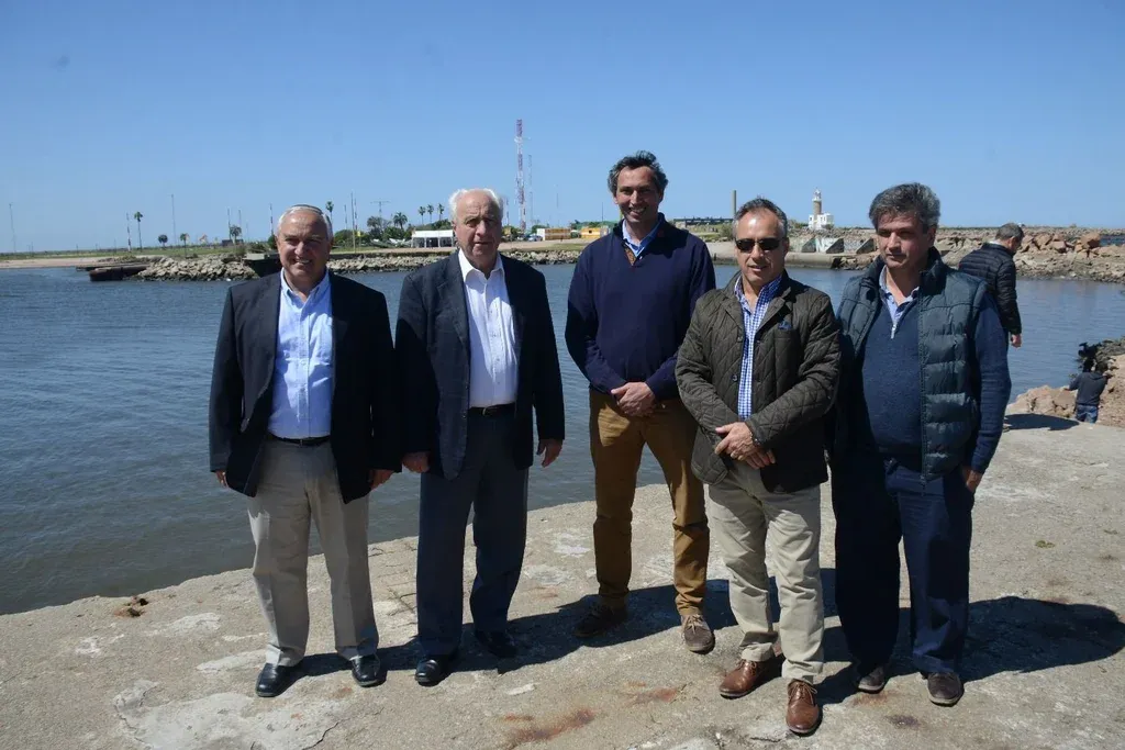 El exministro de Transporte, Víctor Rossi, el exalcalde del municipio CH, Andrés Abt y representantes de la empresa Saceem en el inicio de las obras en el Puerto de Punta Carretas