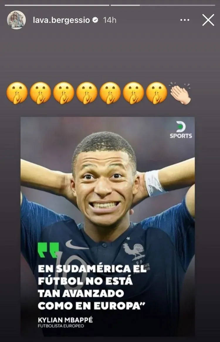 Además, el futbolista argentino también recordó lo que dijo Kylian Mbappé antes del último Mundial y le agregó el emoticón de silencio: "En Sudamérica el fútbol no está tan avanzado como en Europa".