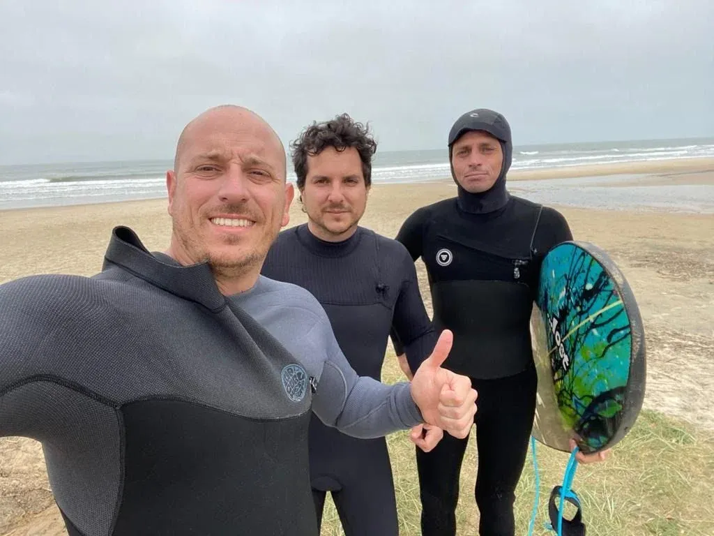 Mide más de un metro ochenta y pesa 92 kilos, por lo que corre un tablón. Entre risas reconoció que Batthyány, su jefe, le dice que necesita un Buquebus para surfar porque sino no lo llevan las olas. “Me divierto mucho y corro un montón”, se defendió.