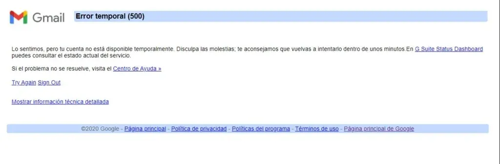 Todos los servicios de Google se estuvieron fuera de servicio desde hace unos minutos. El servicio de mail, Drive, Youtube. Todavía se desconoce el motivo. Se han reportado caídas en varias partes del mundo, con la mayor cantidad de reclamos en Estados Unidos y Europa, según el sitio especializado en caídas Down Detector