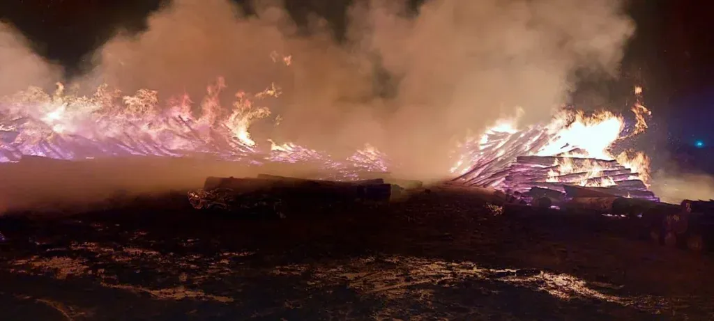 Cuando los bomberos y la policía llegaron al lugar constataron que había dos estibas –montículos de madera de 45 metros de largo, 5 de ancho y 5 de altura– que estaban incendiadas, y existía el riesgo de una propagación generalizada hacia las otras seis estibas en la zona, como también hacia el resto del depósito, que tenía aún más madera.