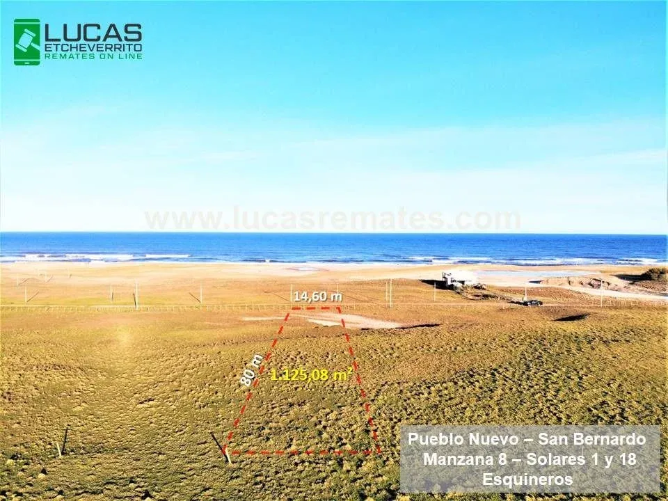 El primer lote cuenta con dos terrenos juntos esquineros con vista al mar, con un total de 1125 metros cuadrados, y se ubica en la manzana 8 solar 1 y 18, con 14,60 metros de frente y 80 de fondo.