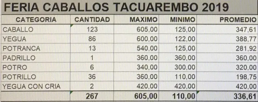 En poco más de dos horas, Zambrano & Cía vendió este jueves en la Asociación Rural de Tacuarembó 260 animales en la 33ª feria especial de yeguarizos, de todas las razas.