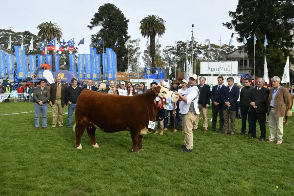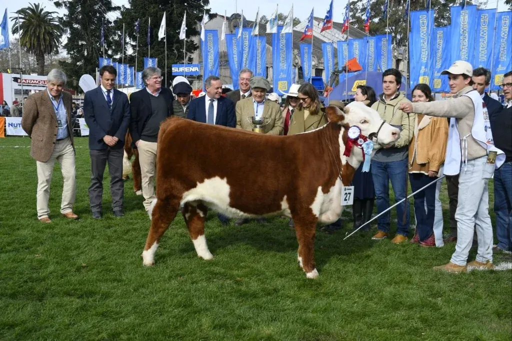 Martirena Bove dijo que el Gran Campeonato en los vientres Hereford que se lleva para la cabaña maragata “siempre es especial, aunque se hayan obtenido otros antes, uno nunca se acostumbra a ganar y las pistas son muy difíciles, la de hoy fue impresionante, con un jurado muy exigente, con mucho golpe de vista y nos tocó, estamos muy contentos”. Sobre la mejor en la variedad astada, indicó que “es una ternera que camina muy bien, es muy lanzada, muy femenina, con pigmento, va a ser una gran vaca, fue Gran Campeona en Durazno, ahora en el Prado, la verdad es que nos tiene muy contentos sobre todo por el esfuerzo de toda la familia y de tantos años”.