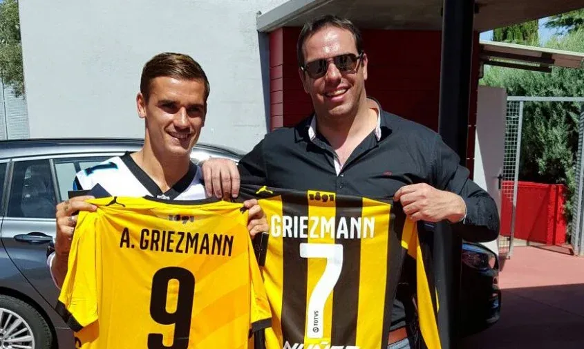 La primera vez que Ruglio le llevó camisetas de Peñarol a Griezmann fue en 2016 y allí le dio el carné de socio