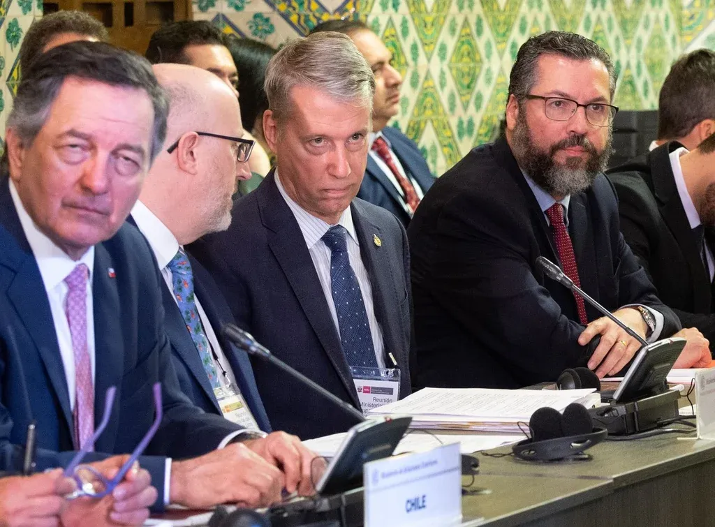 Cris Bouroncle - AFP El canciller chileno, Roberto Ampuero, el secretario parlamentario de la cancillería canadiense, Andrew Leslie, y el nuevo canciller brasileño, Ernesto Araújo, durante la reunión del Grupo de Lima este viernes El grupo reiteró su respaldo a la Asamblea Nacional, a la que reconoce "como órgano constitucionalmente electo" en Venezuela.