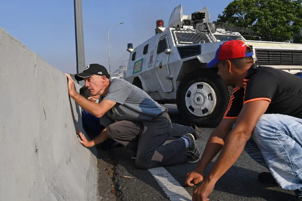 10:20 El intercambio de disparos no cesa en la zona donde Guaidó anunció el alzamiento militar. Miembros de la Policía Nacional lanzaron bombas lacrimógenas contra manifestantes que atendieron el llamado de Guaidó. El jefe del Parlamento instó a salir a las calles para respaldar a los uniformados que se rebelaron contra el presidente Nicolás Maduro en el sector de Altamira, cerca de la base La Carlota.