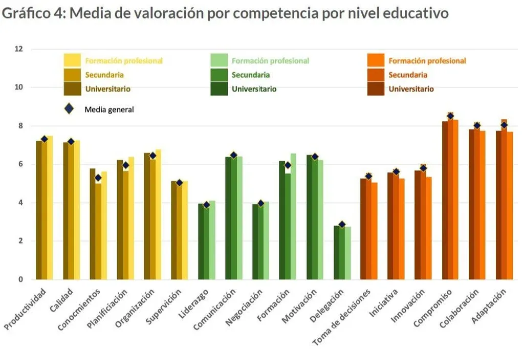 La diferencia por edad es uno de los datos que puede significar una “alerta” ya que, según explicó Migues, las personas de tramos etarios más grandes “tienen un mayor desarrollo” en competencias de liderazgo, comunicación, toma de decisiones, supervisión y delegación a diferencia de los jóvenes, pero “pierden orientación hacia la tarea, la productividad y la calidad” y tienen una “orientación mucho más baja a la adaptación y a la formación”.