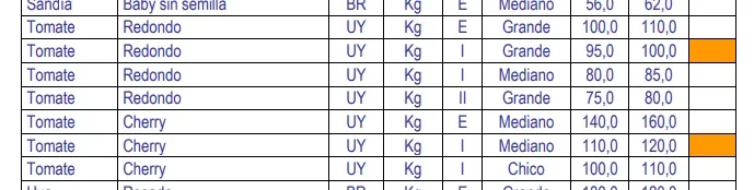 En el caso de los precios mayoristas (ver en el cuadro adjunto), en el Mercado Modelo (principal centro de comercialización hortifrutícola a nivel nacional) los valores tuvieron extremos de $ 75 y $ 110 al inicio de esta semana, según se reportó en el indicador Observatorio Granjero, elaborado por técnicos de la CAMM, la Intendencia de Montevideo y la Dirección General de la Granja del Ministerio de Ganadería, Agricultura y Pesca.