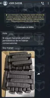 Según informó el propio medio, este martes a las 21:53 al reportero le llegaron tres mensajes por WhatsApp del número +500 54338 que decían: "Hola. Si siguen haciendo articulos (sic) periodísticos de mi habran consecuencias. Soy marset (sic)".
