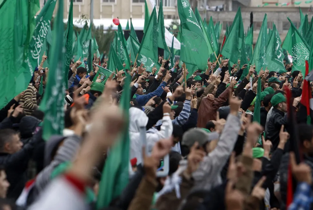 En cambio el movimiento de resistencia palestino Hamas que desafía al gobierno y Ejército israelí desde la franja de Gaza, aunque de naturaleza suní e islamista, persigue un fin diferente. Su objetivo, al menos el declarado, es resistir y combatir la ocupación de territorios palestinos. Su adversario es el Estado de Israel y hasta el momento no ha intentado trasladar su lucha a otros territorios. Su filosofía se fundamenta en el credo de la Hermandad Musulmana nacida en Egipto durante la Nahda o renacimiento árabe, una suerte de confrontación entre la sociedad árabe e islámica estancada y la modernidad arrolladora de una Europa que ya comenzaba a colonizar tierras árabes tras la caída del Imperio Otomano, hace casi un siglo.
