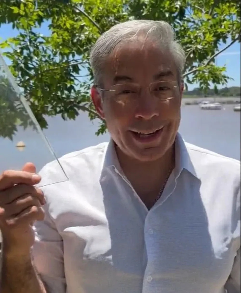 El precandidato por el Partido Colorado, Robert Silva, grabó un video en el que recoge y luego muestra un vidrio roto para ejemplificar la metáfora de "romper el techo de cristal" en relación a la designación de Virginia Cáceres como su sucesora al frente de la Administración Nacional de Enseñanza Pública (ANEP).