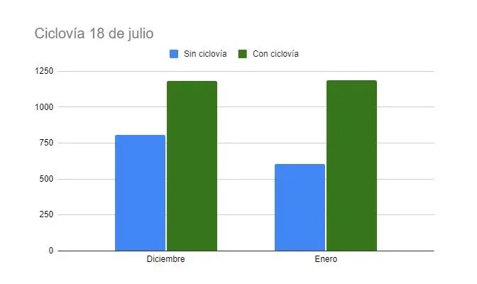 La Intendencia de Montevideo (IM) divulgó datos que indican una suba de bicicletas y de vehículos de movilidad personal (VMP) desde que está la nueva ciclovía de la Avenida 18 de Julio, la cual se inauguró formalmente el pasado jueves 21 de diciembre de 2023.