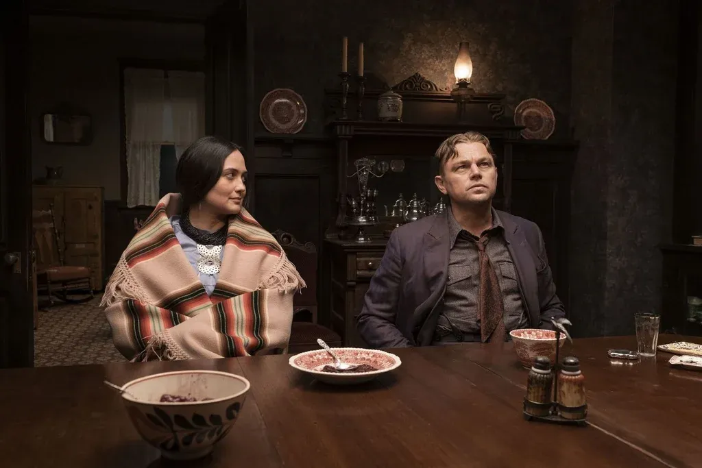 Pasó un año y la imagen seguía siendo una sola. Pero alcanzó. De un lado la actriz Lily Gladstone, envuelta en mantas indígenas, media sonrisa, mirando hacia su izquierda, con un plato de comida marrón sin terminar frente a ella. Del otro lado Leonardo DiCaprio, con los ojos apuntando al techo, la cara hinchada por los años y un papel quizás más rústico, quizás más perverso, no lo sabíamos todavía, con las manos en los bolsillos, el gesto adusto. Y eso era todo. Los asesinos de la luna (Killers of the flower moon), la última y esperadísima película de Martin Scorsese, no precisó más para calmar y disparar el entusiasmo en simultáneo. Una única foto promocional a partir de la que hubo que imaginarse todo lo demás.