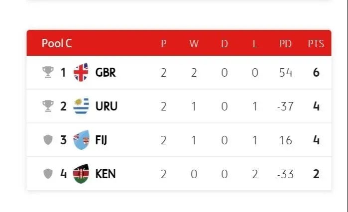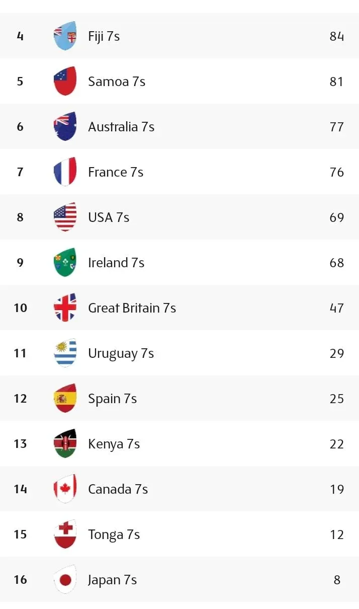 Hoy Los Teros suman 29 puntos en la tabla general, y los sigue España con 25, Kenia con 22, Canadá con 19 y Japón (ya casi descendido) con 6. Tonga tiene 12 pero no suma porque no es parte estable del Circuito y solo jugó dos torneos.