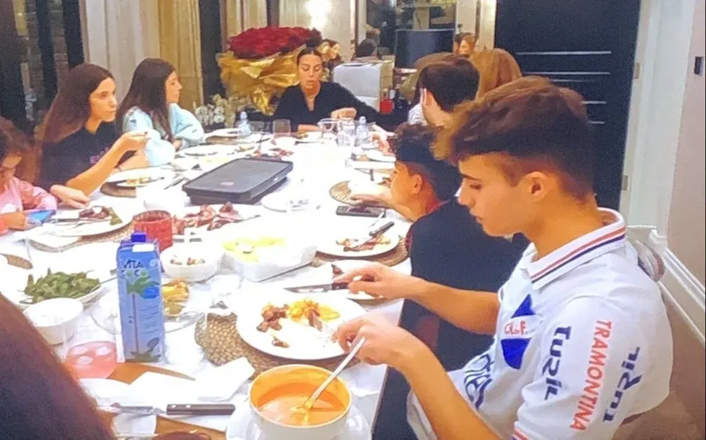 El hincha tricolor amigo de la familia Ronaldo En la reunión familiar de la foto del año pasado, se festejaron los 12 años del hijo mayor del futbolista, Cristiano Ronaldo Jr., quien lo hizo con una torta con el número 7, el que utiliza históricamente su padre.