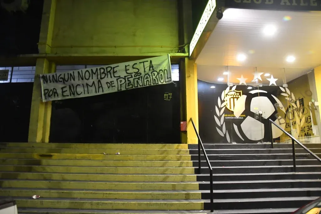 "Ningún nombre está por encima de Peñarol", decía una pancarta que colgaron cerca de la puerta de entrada, en la calle Magallanes.