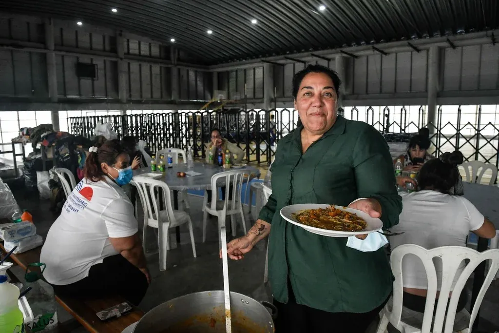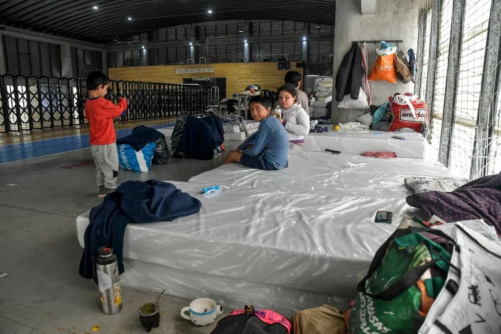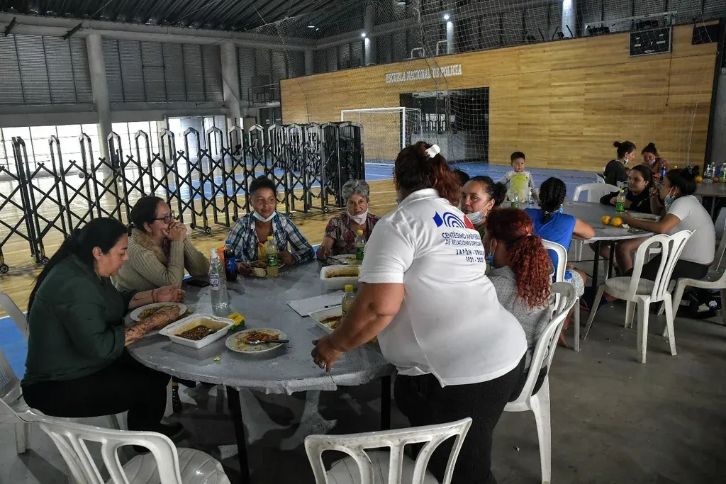 Ya sobre el mediodía, se trasladaron hasta el gimnasio de la Escuela Nacional de la Policía, con la ayuda de las autoridades del Municipio F de Montevideo, donde descansan desde el lunes. Llegaron descalzos, porque ni siquiera les dio el tiempo de calzarse, y con los pies lastimados, pero ahora son revisados a diario por médicos, tienen baños disponibles, reciben comida y también donaciones.