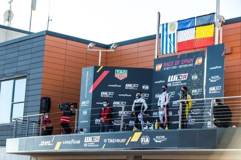 Impresionante domingo para el piloto compatriota Santiago Urrutia. El uruguayo que corre para el equipo Cyan Racing Lynk & Co hizo tres podios consecutivos. Es decir, puso la bandera uruguaya en el podio de la cada una de las tres carreras celebradas por el Campeonato Mundial de Turismos WTCR FIA en el autódromo español de Aragón.