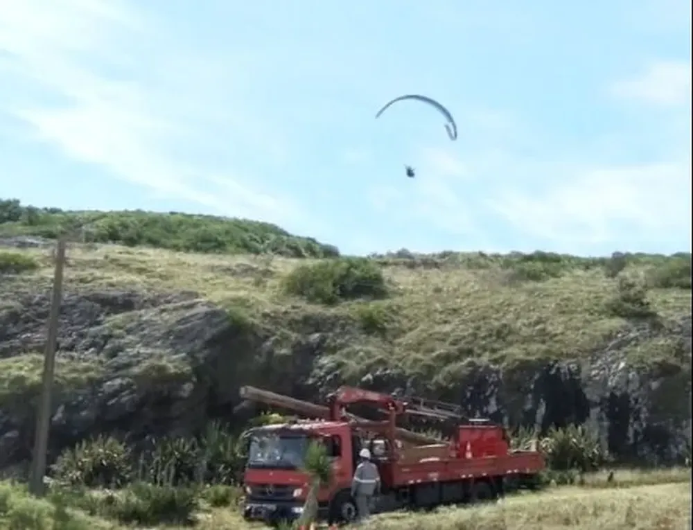 Un hombre volaba en parapente sobre la costa del balneario Las Grutas de Maldonado cuando chocó contra cables de UTE y dejó a 800 personas sin energía durante media hora.