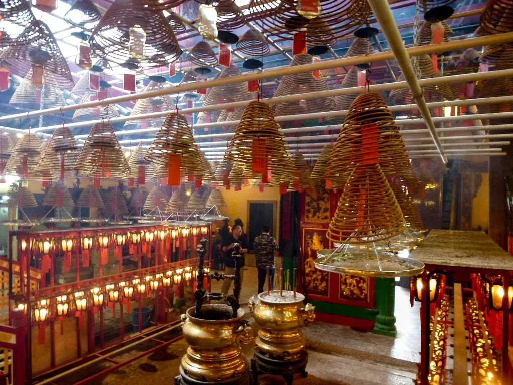 También es digno de admirar el templo Man Mo, de 1847, de una maravillosa fachada, y cuya característica más sorprendente son sus enormes espirales de humo de incienso, lo que genera una gran paz, sobre todo si se toma en cuenta que está cerca del ruidoso distrito financiero. Es un tributo al dios de las Letras (Man) y al dios de la Guerra (Mo).