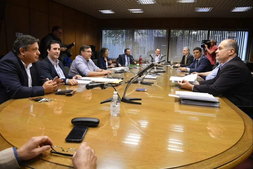 Mientras tanto, casi en paralelo, las autoridades de gobierno –entre las que se incluyen Azucena Arbeleche, Pablo Mieres, Alfredo Cabrera (BPS), Daniel García Zeballos (director de Seguridad Social), entre otros– terminaban de afinar los detalles en la sede del Ministerio de Trabajo.