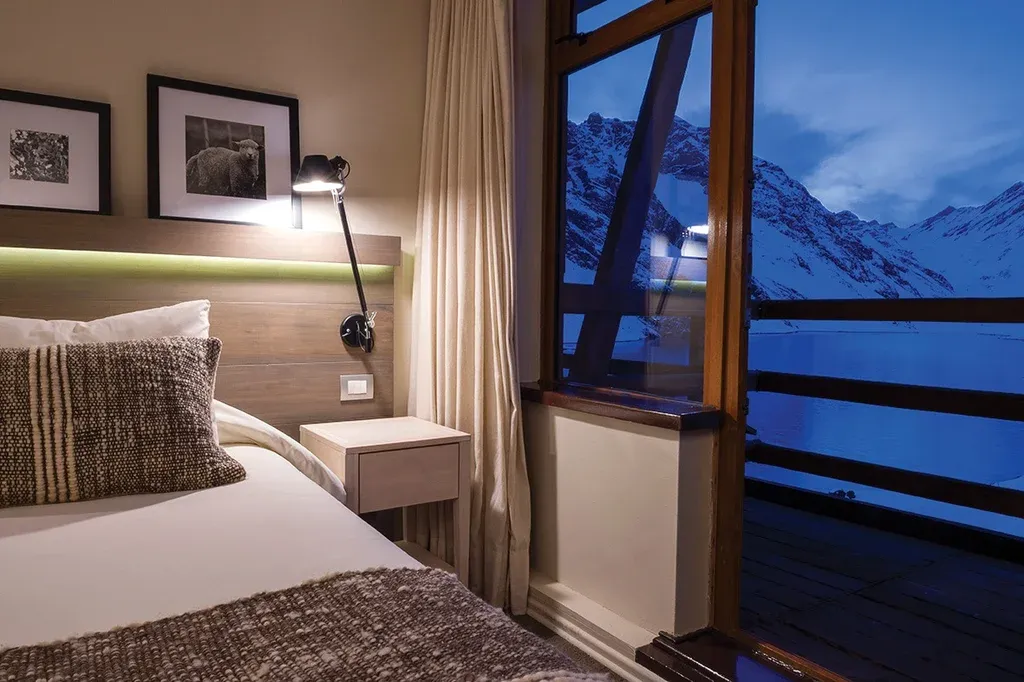Además del hotel, Portillo tiene otras alternativas de alojamiento como chalés privados –con confort para una familia numerosa– o propuestas más económicas pensadas para esquiadores, como el Octógono o el Inca Lodge. El hotel, de seis pisos y 135 habitaciones, se ubica frente a la laguna del Inca, que regala un paisaje increíble. Si el viento está ausente, la laguna se convierte en un espejo y las montañas se duplican en un reflejo perfecto; hay días en los que el sol tiñe todo de un rosa intenso; y otros en los que las nubes cargan el cielo de gris y el viento inquieta las aguas. No hay días iguales: la vista es espontánea y despampanante.