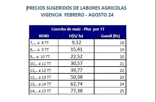 En un tema que el presidente de CUSA señaló como “muy discutido”, se decidió además una corrección en el tema de los litros de gasoil considerados por hectárea en algunas de las labores agrícolas.
